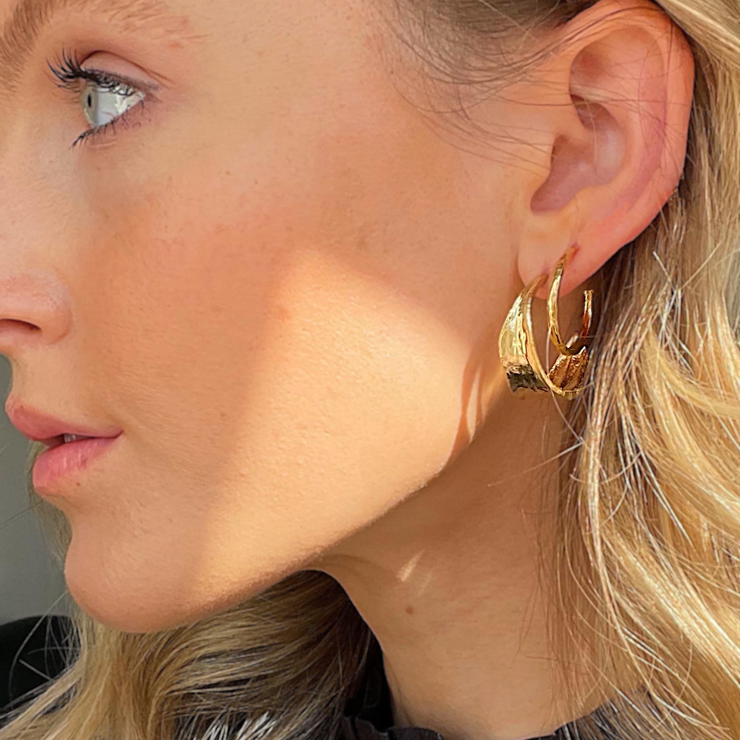 Save with our sets. Gold Iris Petal Hoop Earrings and Gold Hammered Hoop Earrings.