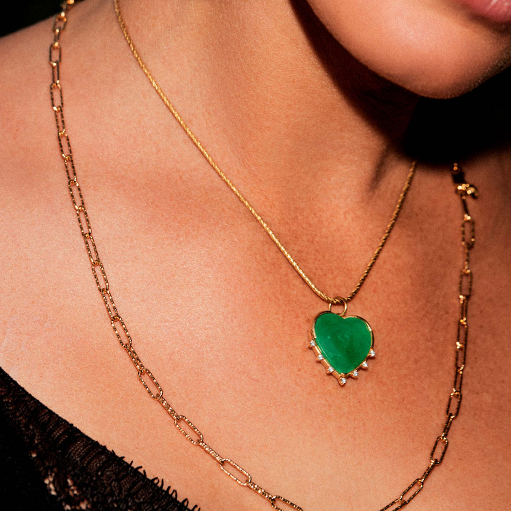 Zenu Emerald and Diamond Heart Charm - Large